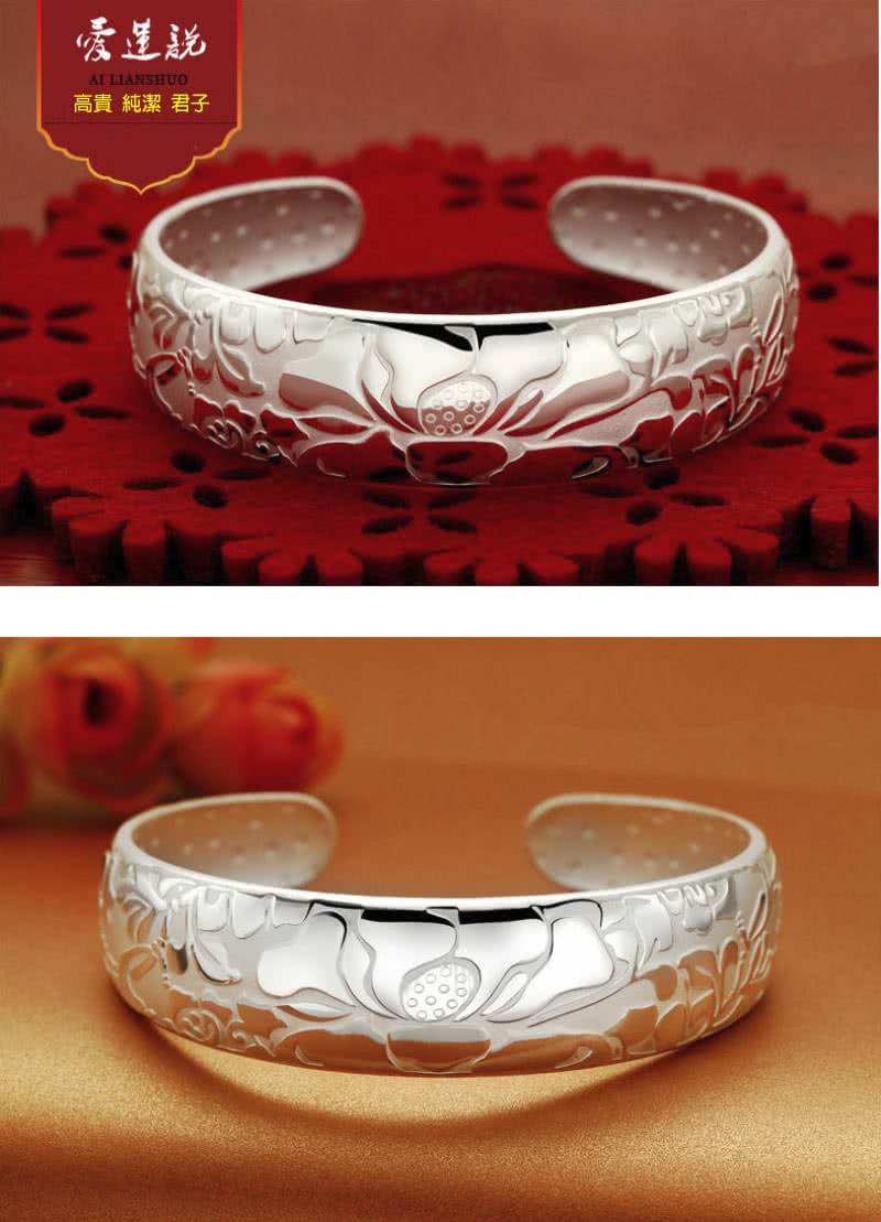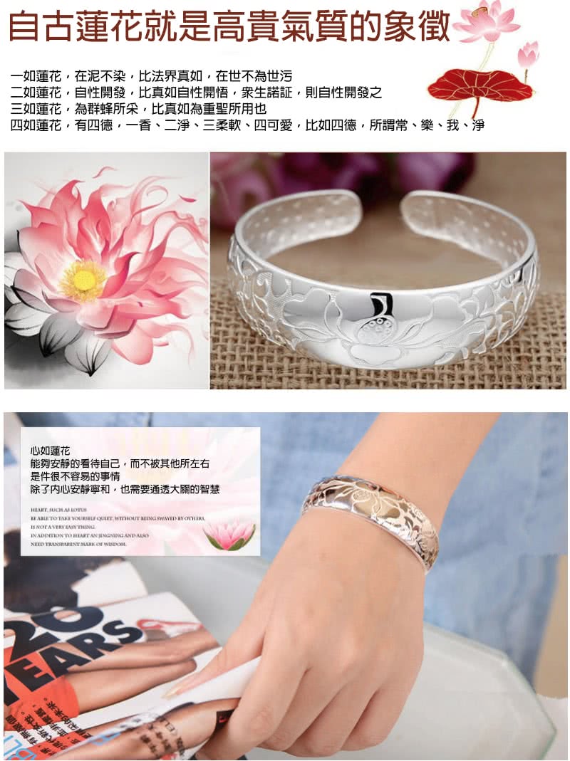 【I-Shine】925純銀-步步生蓮-蓮花圖騰精工立體雕花純銀手鐲手環(步步生蓮)如何搭配