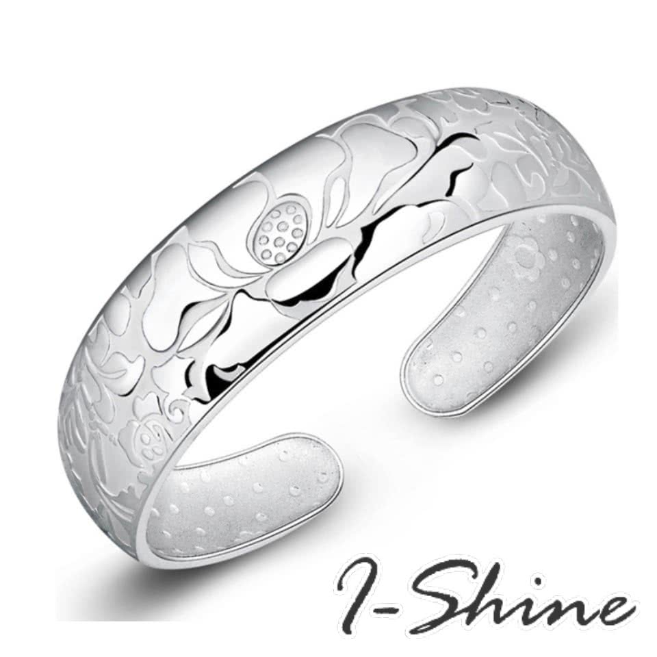 【I-Shine】925純銀-步步生蓮-蓮花圖騰精工立體雕花純銀手鐲手環(步步生蓮)穿搭搭配